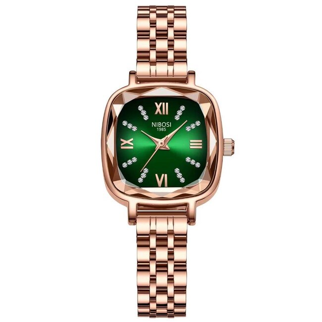 De NIBOSI Emerald Luxe is een schitterend dameshorloge dat elegantie en exclusiviteit uitstraalt.