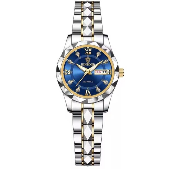 binbond Luxe Dameshorloge Zilver  Blauw
