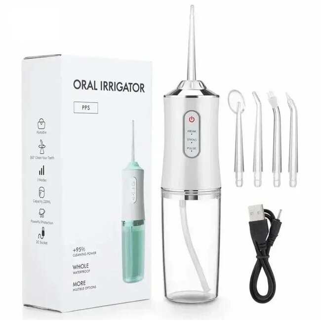 Onze draadloze waterflosser is de ideale oplossing voor een grondige en effectieve mondverzorging. Ontworpen voor het verwijderen van tandplak en voedselresten tussen de tanden en op moeilijk bereikbare plekken, zorgt deze flosser voor een frisse en schone mond.