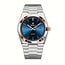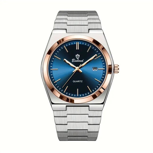 Een horloge dat moderne elegantie en ingetogen luxe uitstraalt — de Bivond Silver Blue Rose Accent Edition combineert een strak zilverkleurig stalen ontwerp met een diepblauwe wijzerplaat en verfijnde roségouden accenten. Deze combinatie zorgt voor een stijlvolle balans tussen koel modern en warm luxe.
