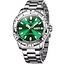 Een horloge dat sportieve klasse en verfijnde luxe combineert — de Olevs Silver Green Sport Classic Edition valt direct op door zijn levendige groene wijzerplaat, gecombineerd met een robuuste zilverkleurige stalen kast en band. De frisse kleur geeft dit horloge een moderne uitstraling zonder zijn tijdloze karakter te verliezen.