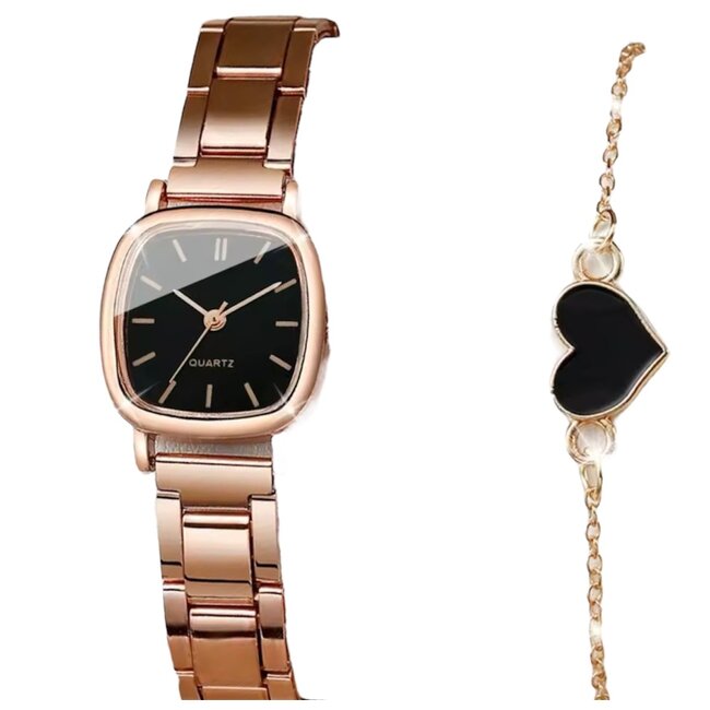 Luxe Dameshorloge met Armband Rosé Zwart