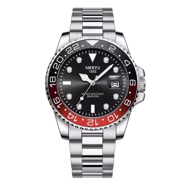 Ervaar de ultieme combinatie van sportieve klasse en tijdloze luxe met de Nibosi GMT Sport Edition. Het horloge is geïnspireerd op klassieke duikdesigns en straalt kracht en verfijning uit door zijn tweekleurige bezel en robuuste roestvrijstalen band. Lees meer.