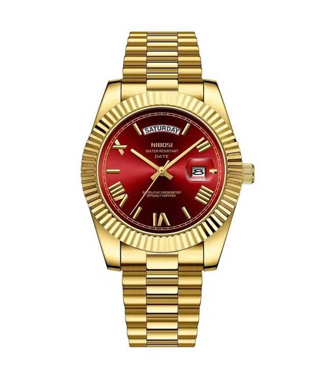 De Nibosi Goud Rood Edition is een krachtig statement van stijl en zelfvertrouwen.