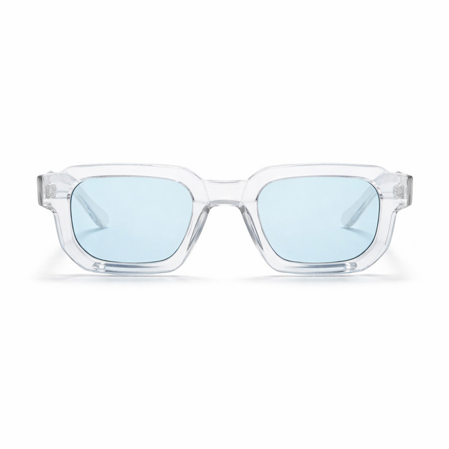 De Mpariz zonnebril met transparant frame en lichtblauwe lenzen geeft je look direct een cleane, premium uitstraling — perfect voor zonnige dagen, festivals of dagelijks gebruik.