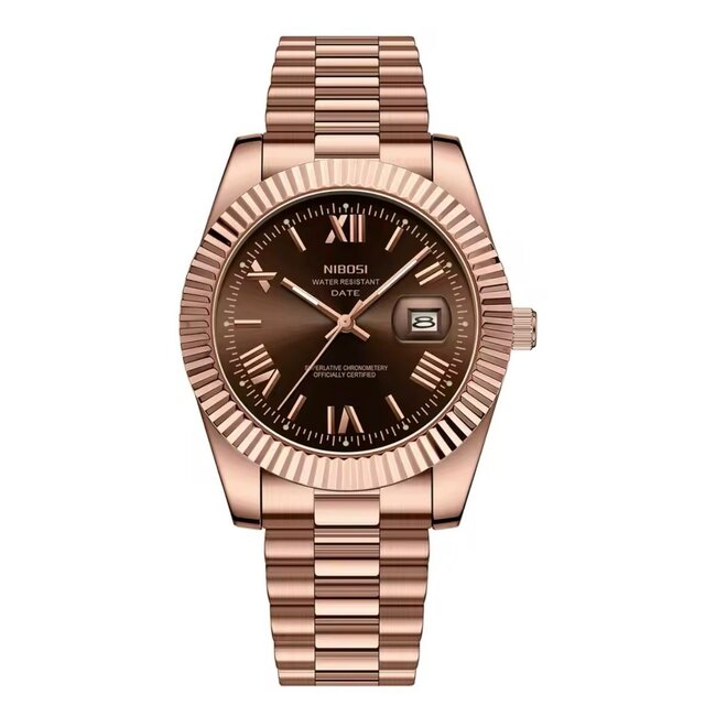 De Nibosi Rosé Chocolate Dial Edition is een verfijnde samensmelting van elegantie en moderne klasse.